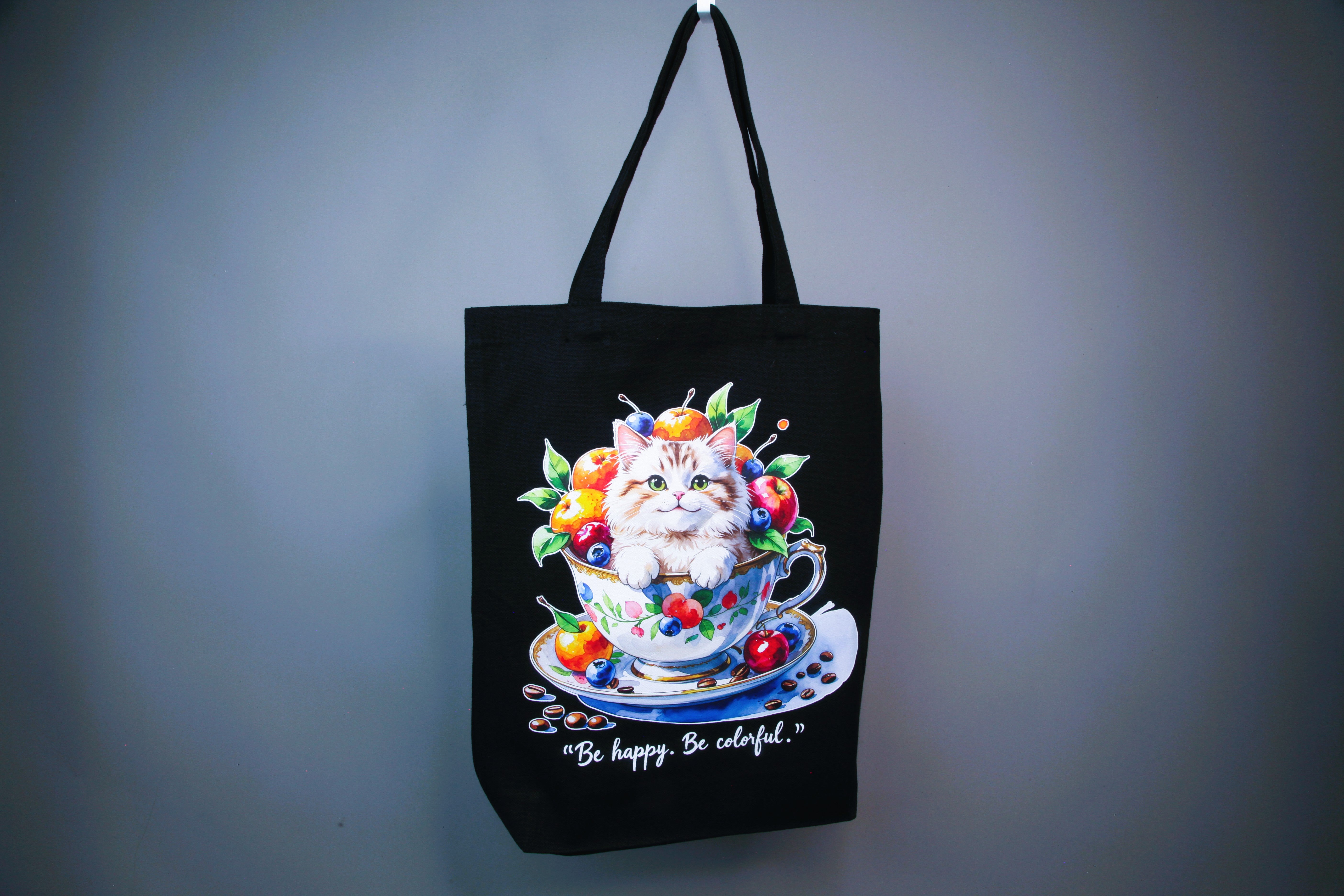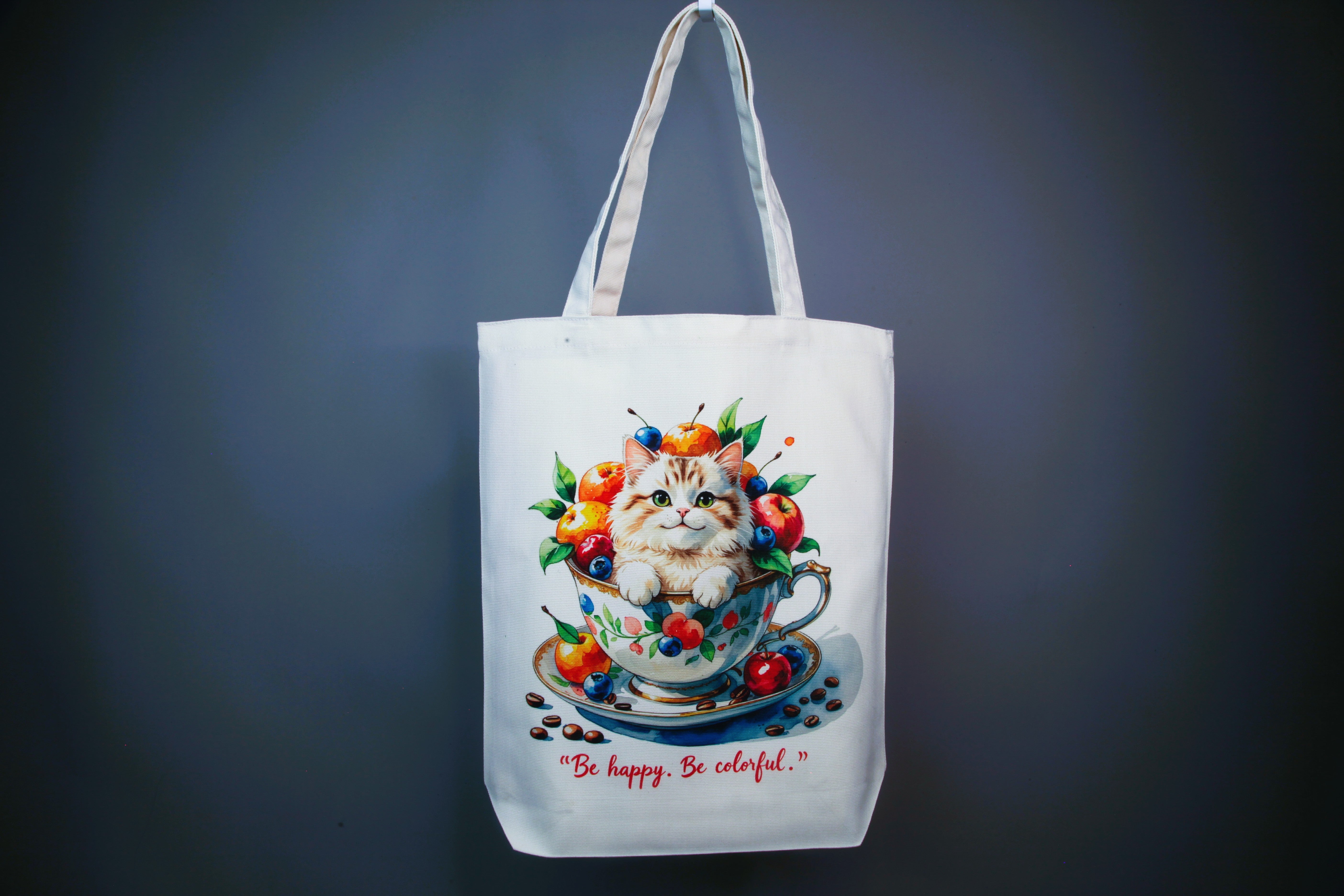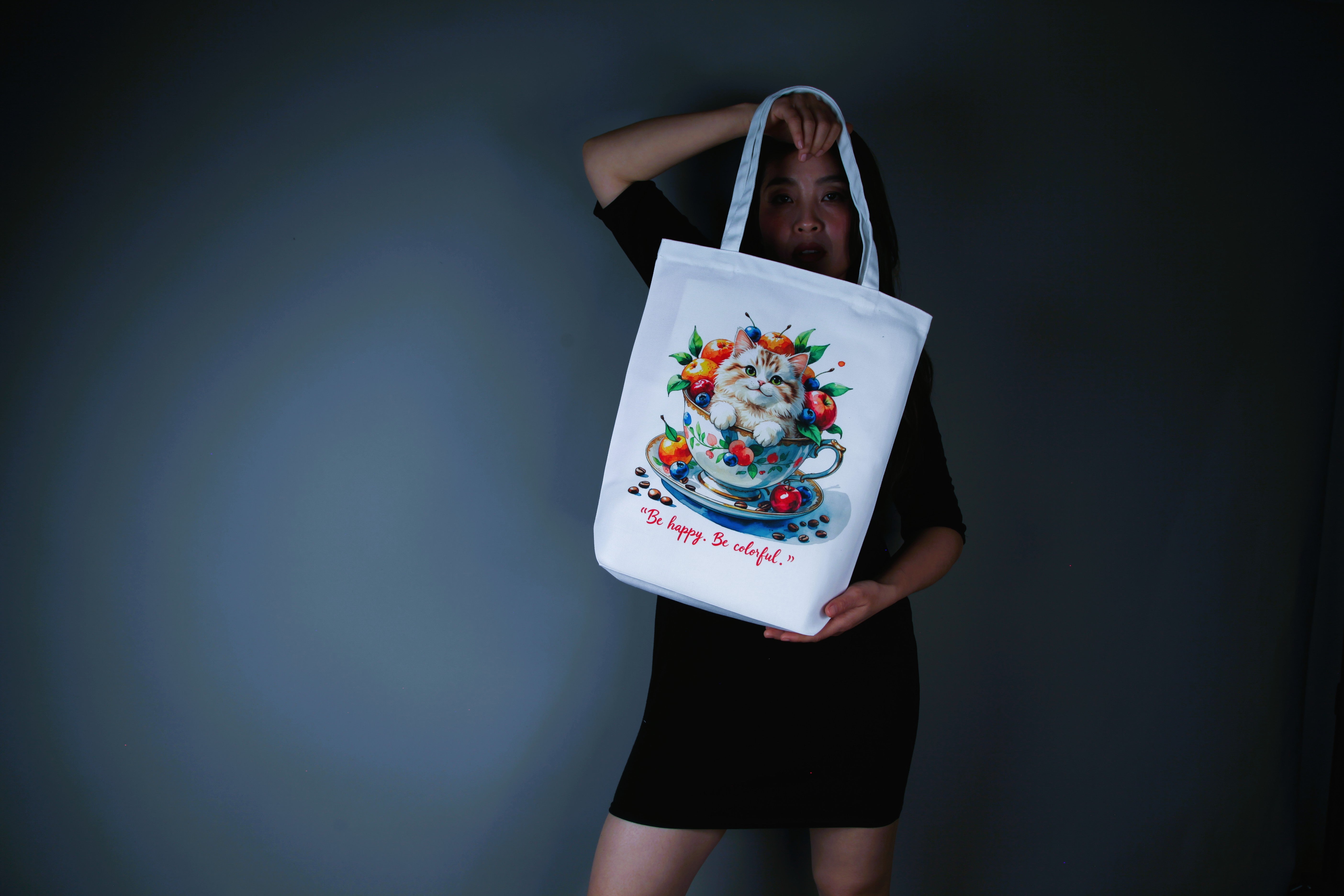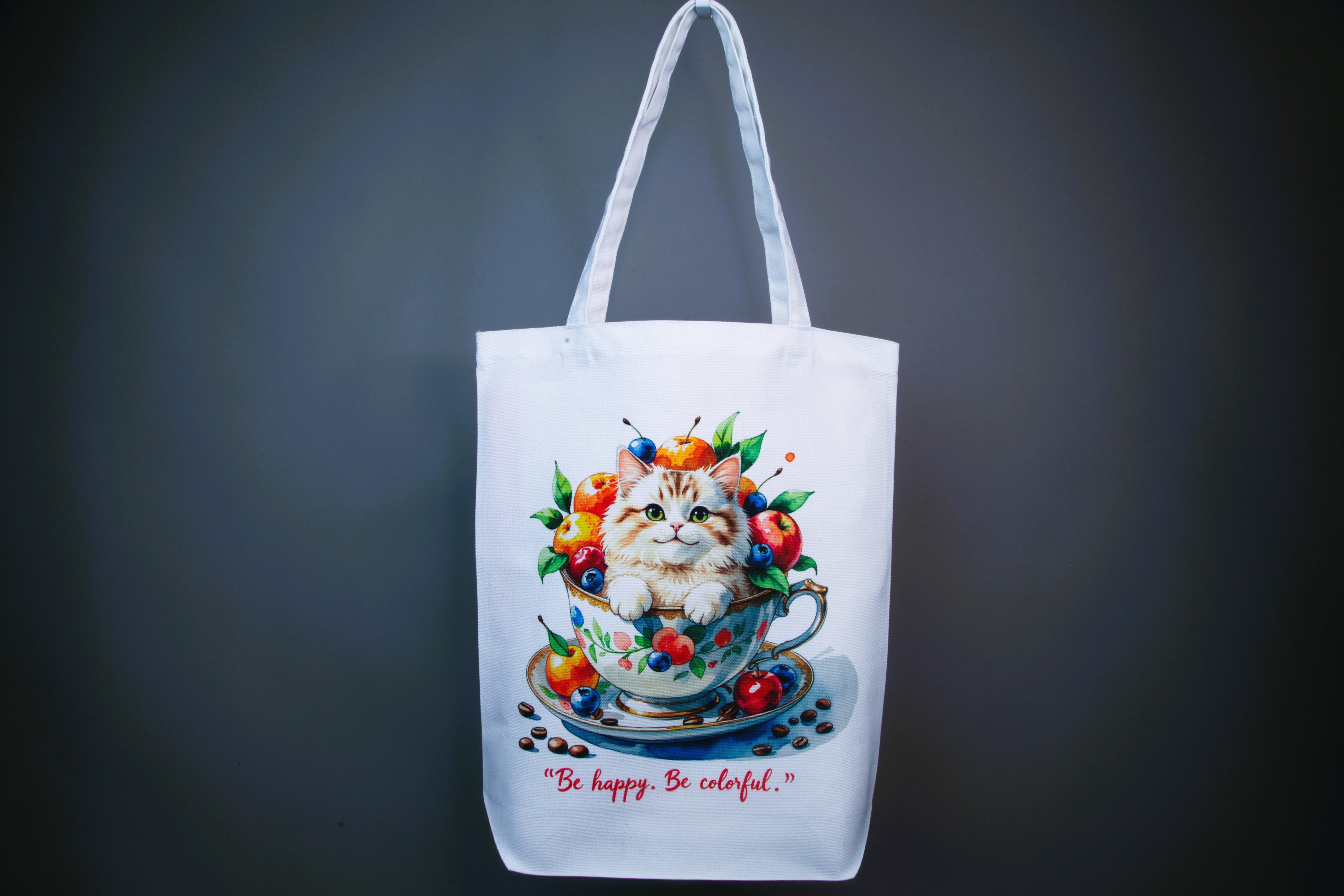 Joyful Cup Cat Tote Bag – Eco Canvas
