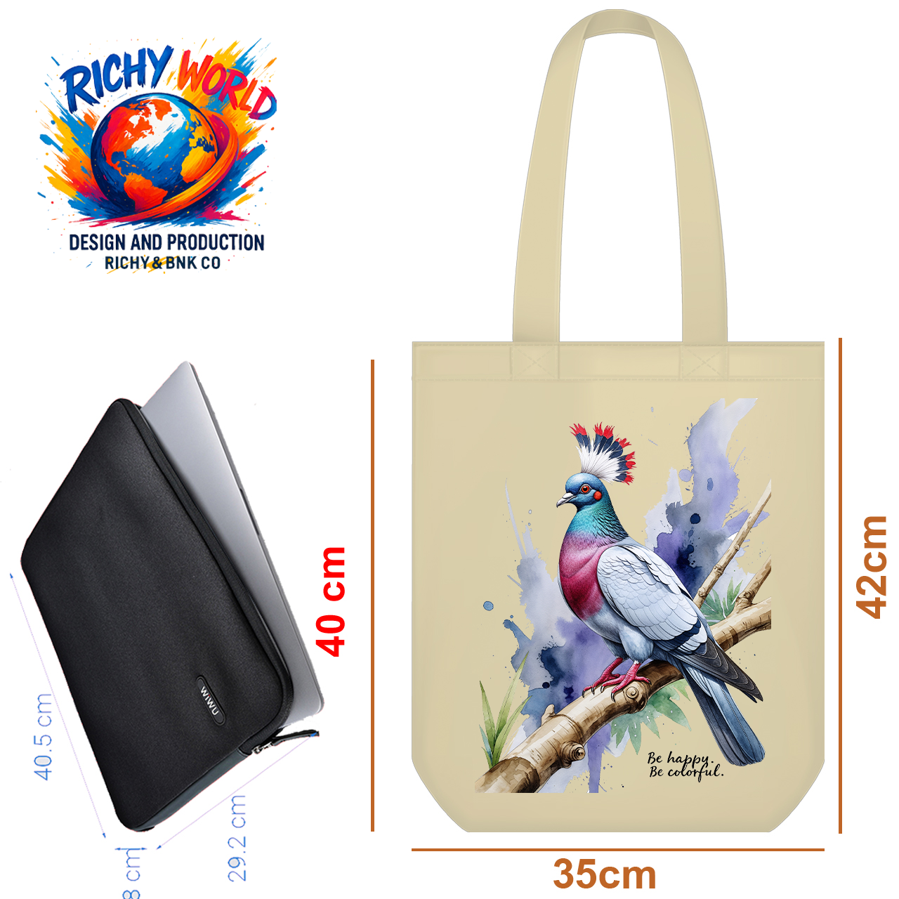 Colorful Pigeon - Bird Tote Bag – Eco Canvas