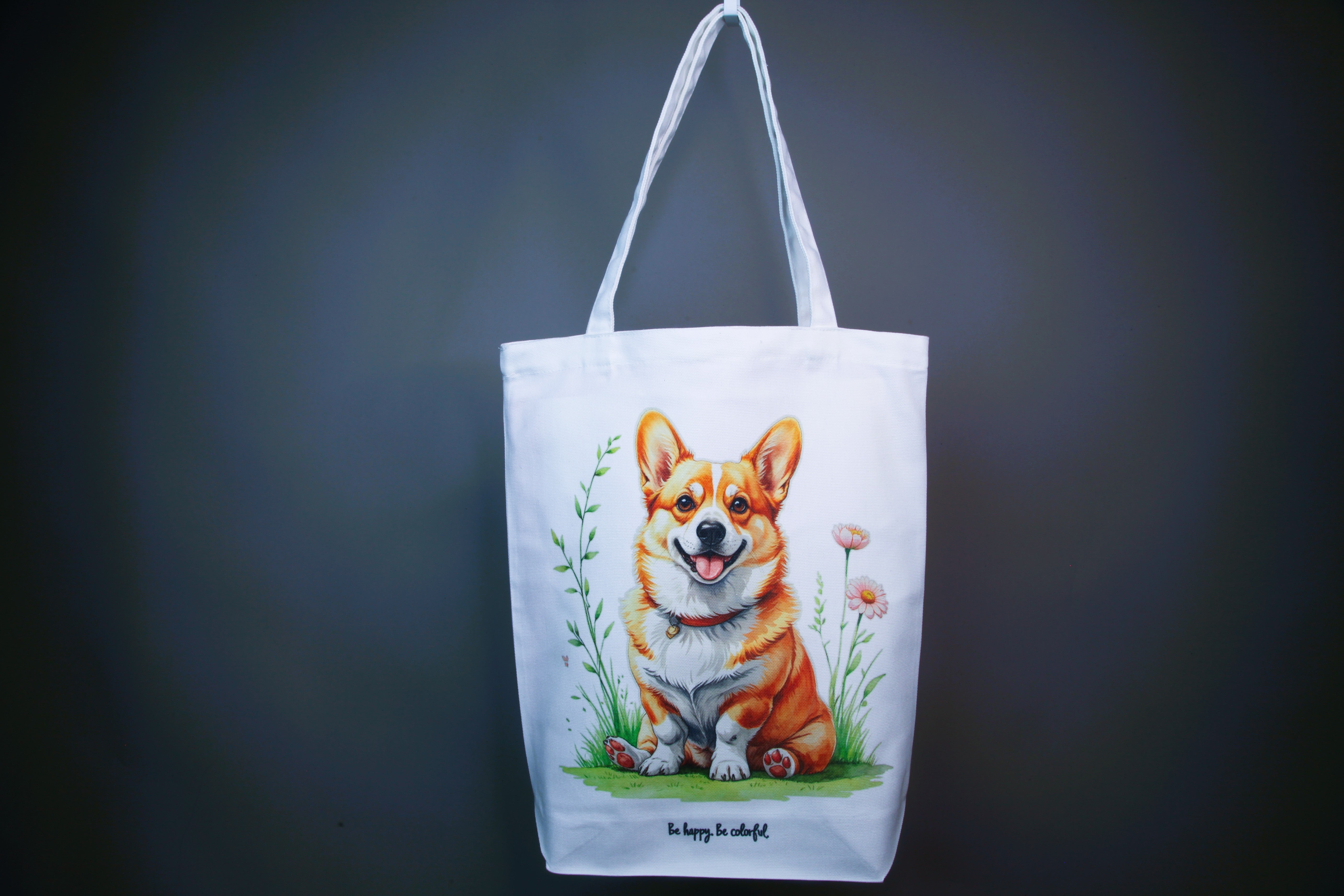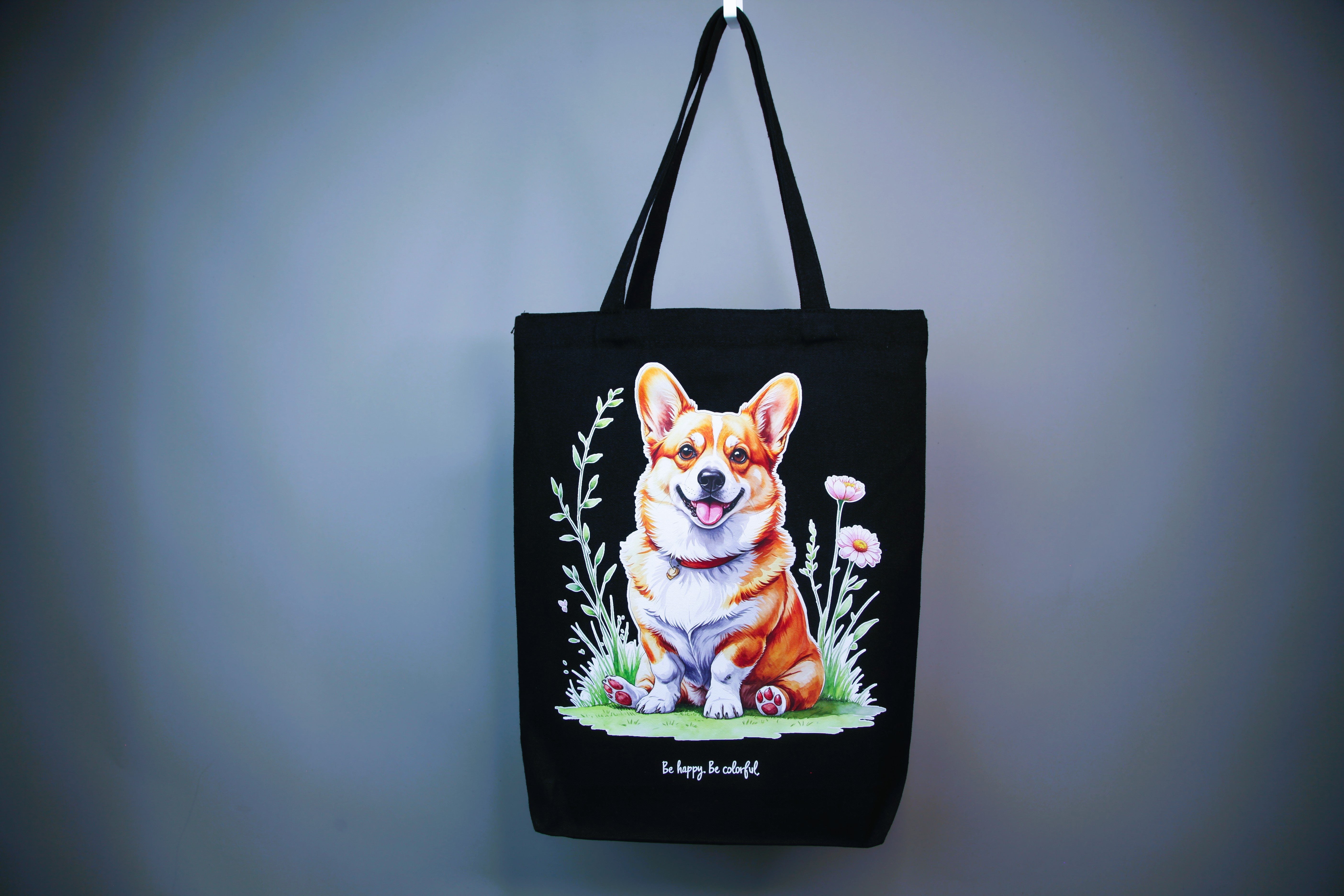 Corgi in Bloom style 1 - Dog Tote Bag - Eco Canvas